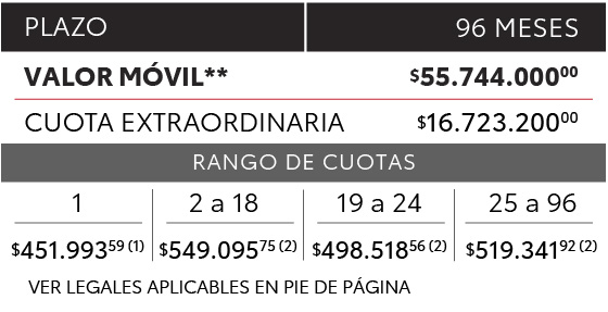 Te permite ahorrar el 70% del valor del vehículo y el 30% restante lo abonás al momento de la adjudicación. Planificá tu economía en 96 cuotas.