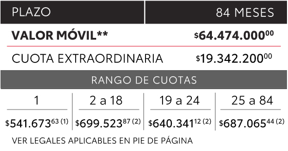 (**) VALOR MÓVIL EQUIVALENTE AL 70% DEL PRECIO DEL AUTOMOTOR SUGERIDO POR TOYOTA ARGENTINA S.A. PARA LA VENTA AL PÚBLICO. PRECIO SUGERIDO POR TOYOTA ARGENTINA S.A. PARA LA VENTA AL PÚBLICO $64.474.000,00. PRECIO SIN IMPUESTOS NACIONALES $58.347.511,31.PLAN DE AHORRO PREVIO POR GRUPO CERRADO APROBADO POR RESOLUCIONES DE LA INSPECCIÓN GENERAL DE JUSTICIA N° 1490 DEL 22/08/2014 Y N° 358/2023 DEL 04/05/2023. TIPO DE PLAN 70/30. ADJUDICACIÓN POR SORTEO O LICITACIÓN. PLAZO 84 CUOTAS MENSUALES. MONTO DE GASTOS DE ENTREGA SUJETO A LIBRE PACTO DENTRO DE LOS VALORES MÁXIMOS COMUNICADOS A LA INSPECCIÓN GENERAL DE JUSTICIA Y QUE LA ENTIDAD ADMINISTRADORA PONE A DISPOSICIÓN DEL SUSCRIPTOR. ADMINISTRA TOYOTA PLAN ARGENTINA S.A. DE AHORRO PARA FINES DETERMINADOS, AV. EDUARDO MADERO 1020, PISO 5°, C.A.B.A., CUIT: 30-71439695-8. VÁLIDO PARA SOLICITUDES RECIBIDAS EN LA ADMINISTRADORA DESDE EL 01 DE NOVIEMBRE DE 2025 Y HASTA TANTO EXISTIERE UNA NUEVA LISTA DE PRECIOS DE TOYOTA ARGENTINA S.A. (1) CORRESPONDE AL IMPORTE DE LA CUOTA 1 DEL PLAN HIACE FURGÓN L2H2 CON CUOTA PURA REDUCIDA EQUIVALENTE AL 70% DEL VALOR MÓVIL VIGENTE AL 01 DE NOVIEMBRE DE 2025 ($ 64.474.000,00). INCLUYE CARGO POR ADMINISTRACIÓN DEL 10% DE LA CUOTA PURA DE $16.226,82, PRECIO SIN IMPUESTOS NACIONALES $13.410,59. INCLUYE DERECHO DE ADHESIÓN Y PERMANENCIA (“DAP”) CORRESPONDIENTE AL 3% DEL VALOR MÓVIL + IVA, PRORRATEADO EN 24 CUOTAS ($390.067,70). EL DAP TOTAL SI SE ABONARA EN LA CUOTA 1 ES $1.934.220,00. (2) SIMULACIÓN DE IMPORTES DE LAS CUOTAS SEGÚN EL VALOR MÓVIL VIGENTE AL 01 DE NOVIEMBRE DE 2025 ($64.474.000,00). EL IMPORTE REAL DE LAS CUOTAS 2 A 84 SE CALCULA TOMANDO COMO BASE EL 70% DEL VALOR MOVIL VIGENTE EN CADA EMISIÓN DIVIDIDO POR LA CANTIDAD DE CUOTAS DEL PLAN. EL 30% RESTANTE (CUOTA COMPLEMENTARIA) SE INTEGRA JUNTO CON LA ACEPTACIÓN DE LA ADJUDICACIÓN. SUJETO A VARIACIONES EN LA LISTA DE PRECIOS. ORIGEN DEL PRODUCTO: ARGENTINA. IMAGEN NO CONTRACTUAL. PARA MÁS INFORMACIÓN Y CONDICIONES O LIMITACIONES APLICABLES, CONSULTE EN WWW.TOYOTAPLAN.COM.AR Y EN CONCESIONARIOS OFICIALES TOYOTA.