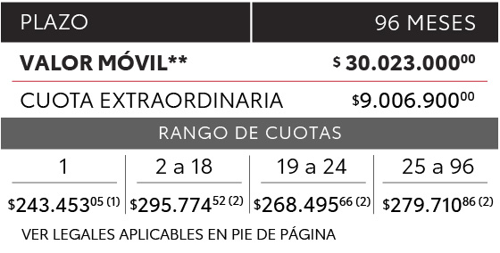 Te permite ahorrar el 70% del valor del vehículo y el 30% restante lo abonás al momento de la adjudicación. Planificá tu economía en 96 cuotas.